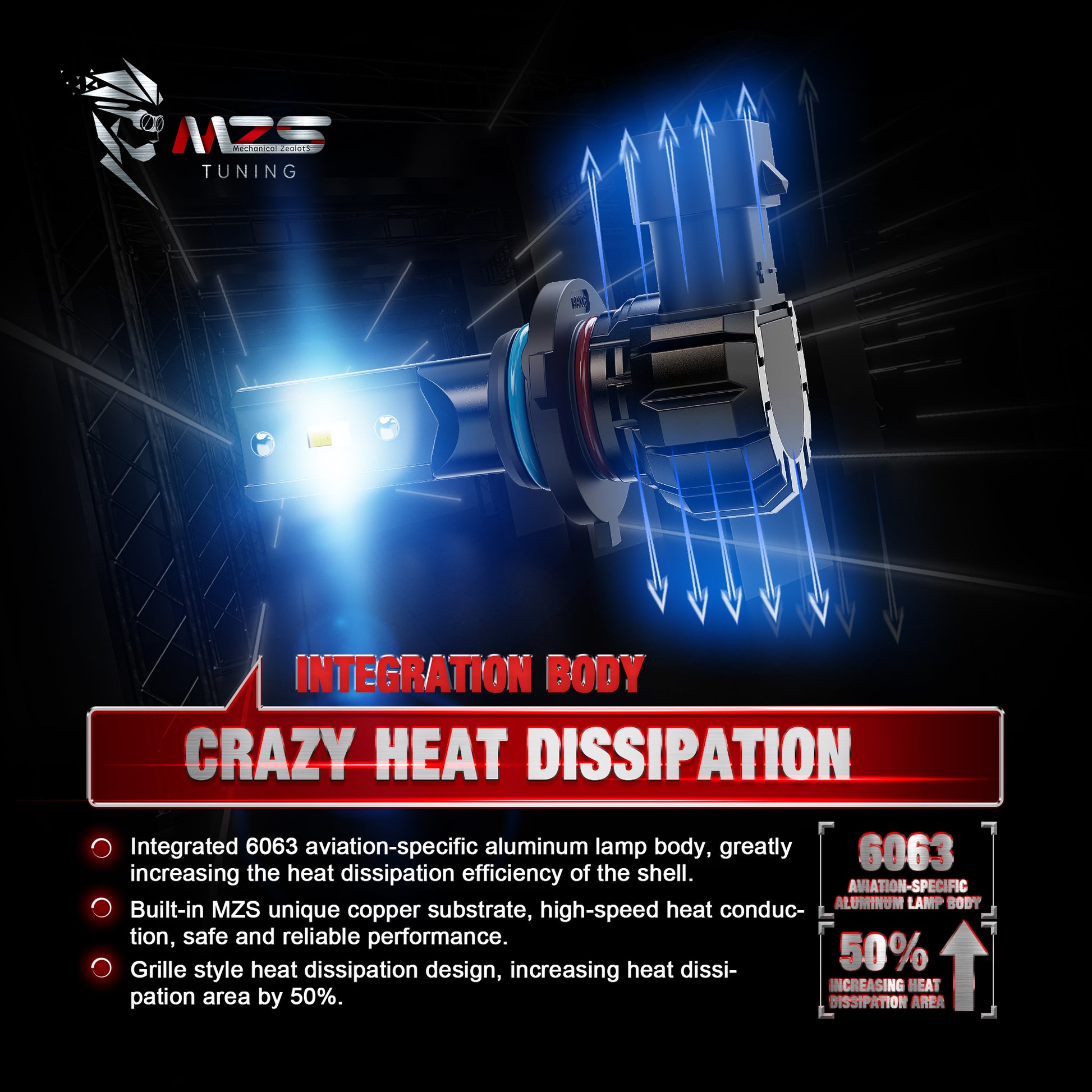 - SILENT FANLESS DESIGN: Aviation grade aluminum bulb housing and built-in MZS copper substrate, high-speed heat dissipation to ensure light bulb work steadily and over 50000 hours lifespan.