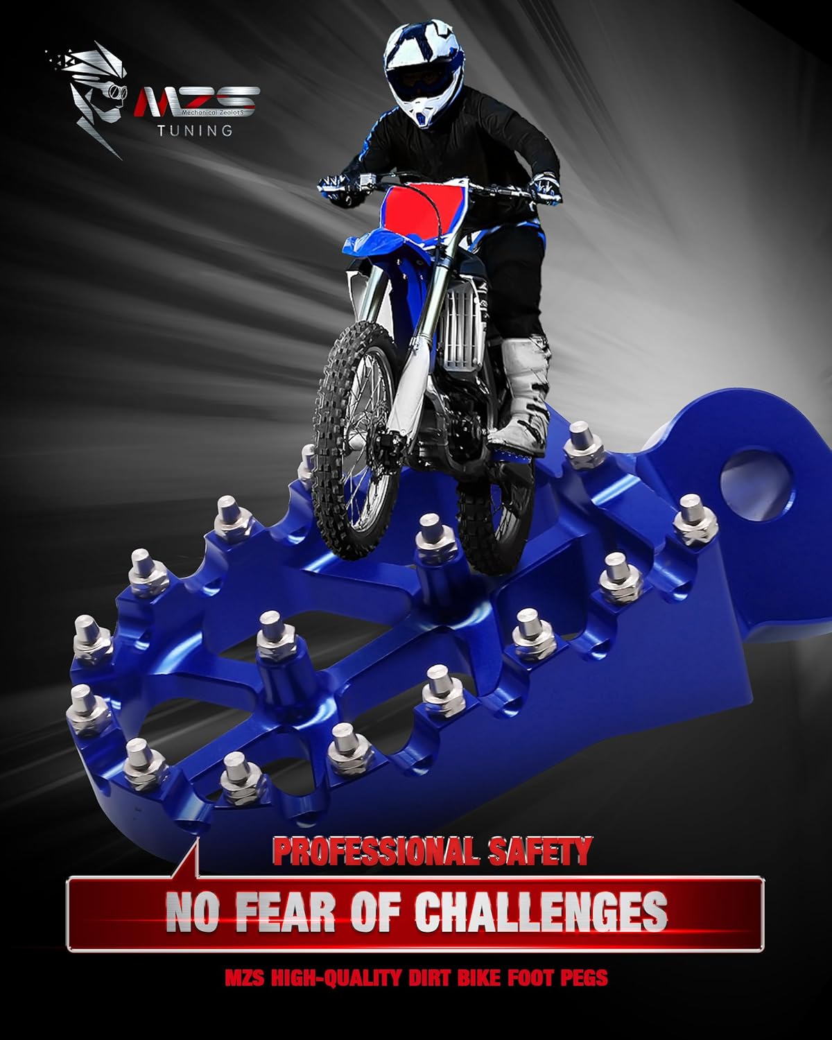 MZS Dirt Bike Foot Pegs, CNC Motocross Footpeg MX Footrest Rest Pedal Blue Compatible with YZ65 YZ85 YZ125 YZ250 YZ250F YZ125X YZ250X YZ426F YZ450F YZ450FX YZ250FX WR250F WR450F