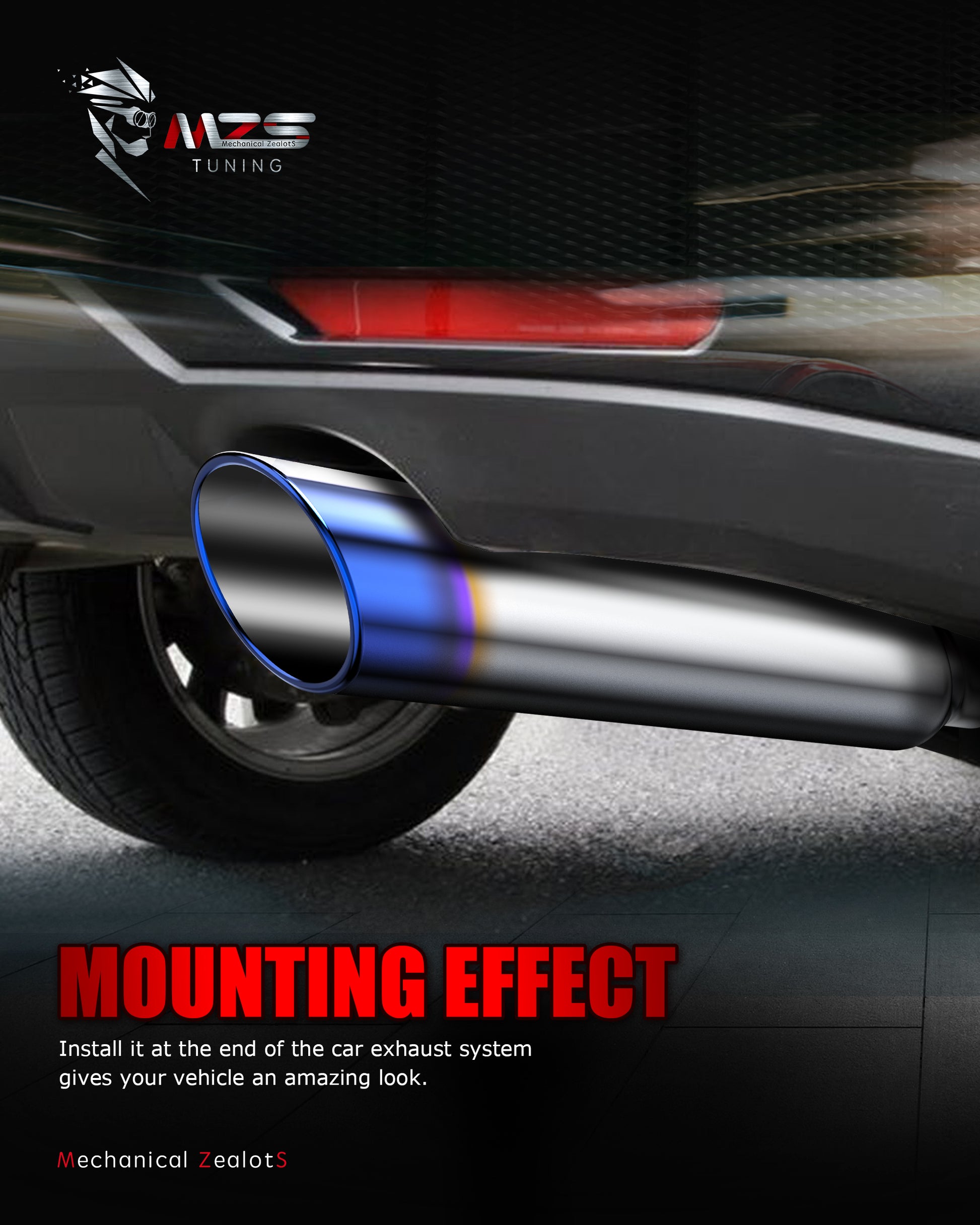 - Perfect Appearance: Polish stainless smooth surface, rolled edge and angled cut design. The burnt blue tip provides an artistic focal point for the rear of the car, making your car stand out from the crowd.