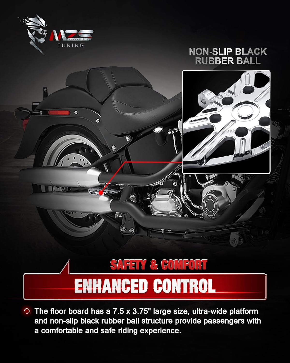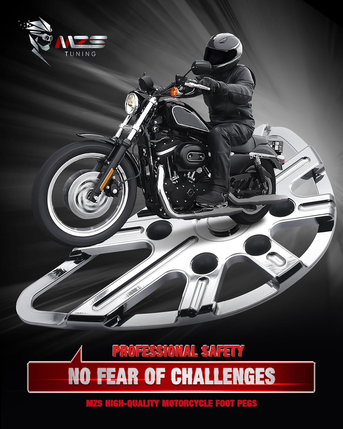 MZS Motorcycle Foot Pegs, Touring Front Floorboards Cruiser Rear Footboards Skeleton Chrome Compatible with Sportster Softail Dyna V Rod Road Glide Electra Street Glide Road King Trike 84-24