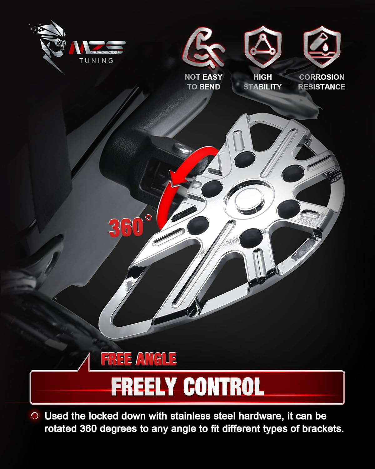 - 360° ROTATING ADJUSTABLE - The foot pegs are used the locked down with stainless steel hardware, it can be rotated 360 degrees to any angle to fit different types of brackets and find the most comfortable angle for your position