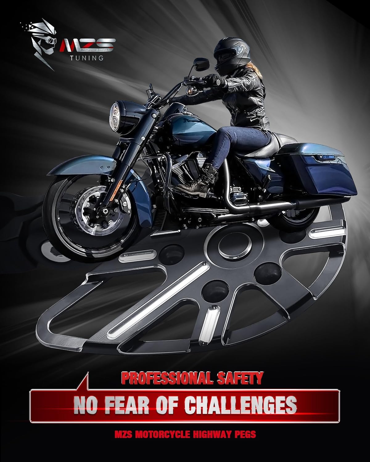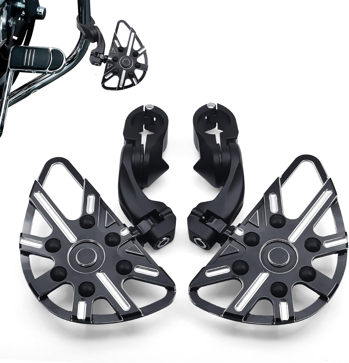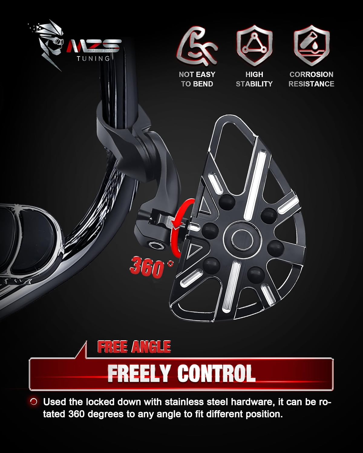 MZS Motorcycle Highway Pegs, 1.25" Adjustable Short Angled Wide Foot Peg Black Compatible with Softail Sportster Electra Road King Street Glide Vulcan VTX V Star Boulevard for 1 1/4 Engine Guards