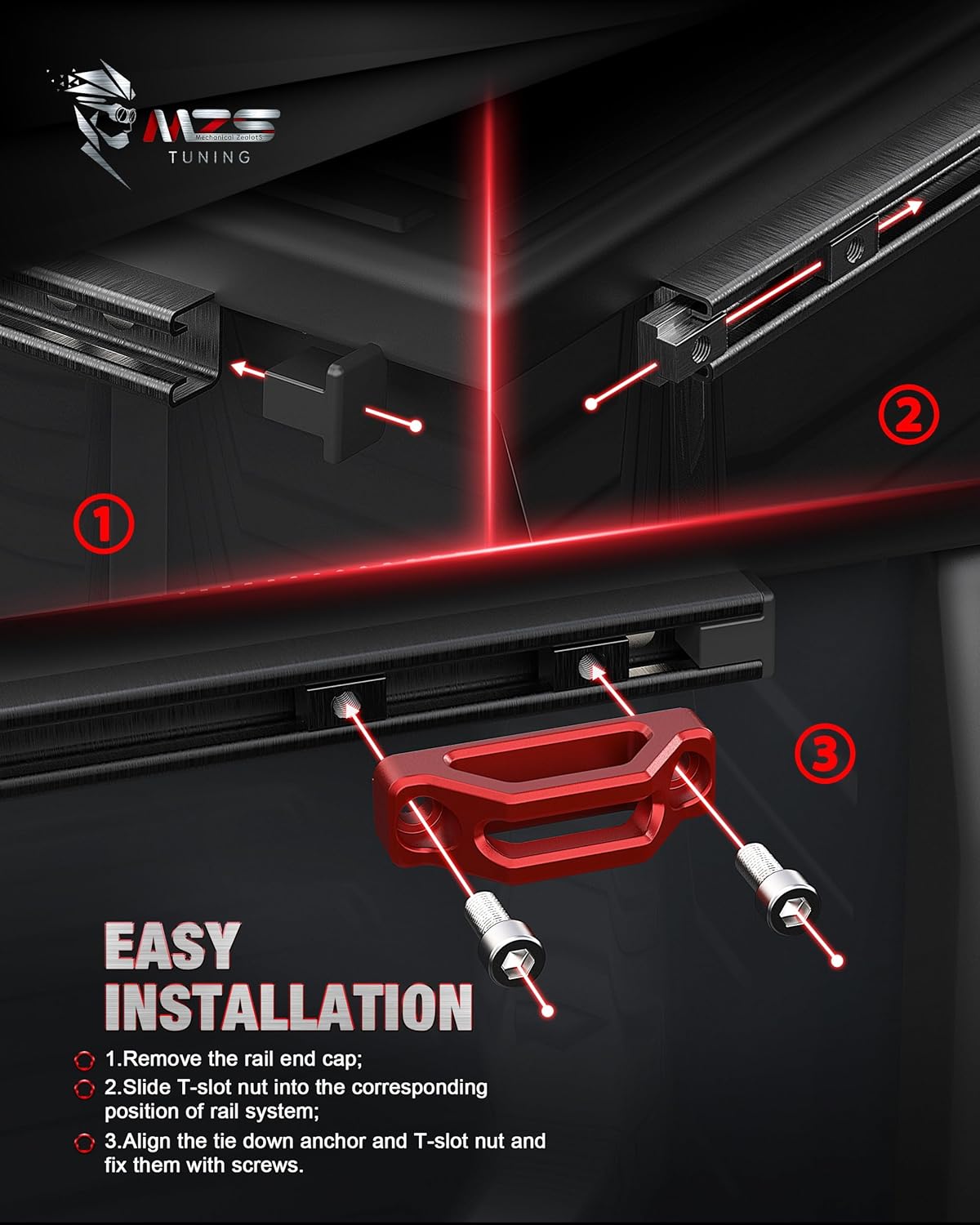Secure Anchor Points: MZS tie down anchors provides additional cargo tie down points in the tacoma bed to secure cargo of all sizes and weights - bikes, motorcycles, furniture, appliances, and other loads, prevent them from shifting or getting damaged during transport